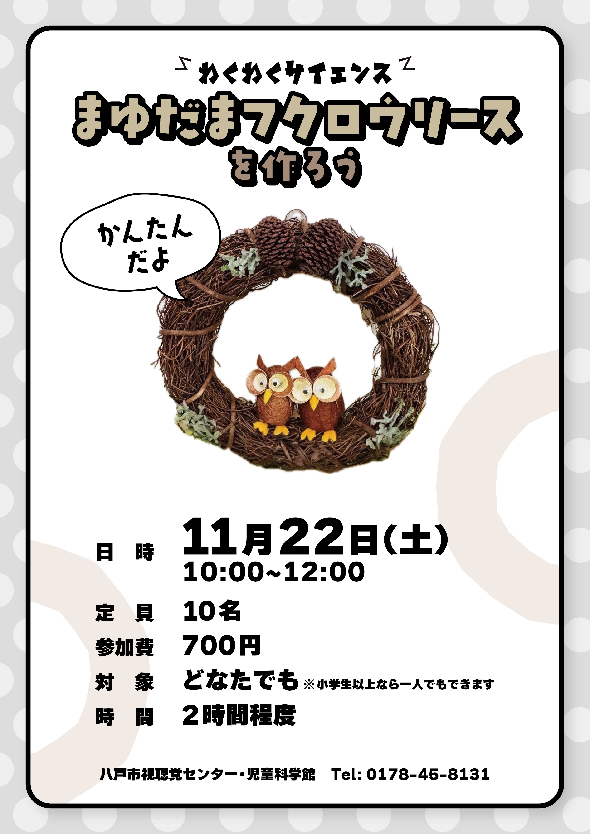 わくわくサイエンス「まゆだまフクロウリースを作ろう」