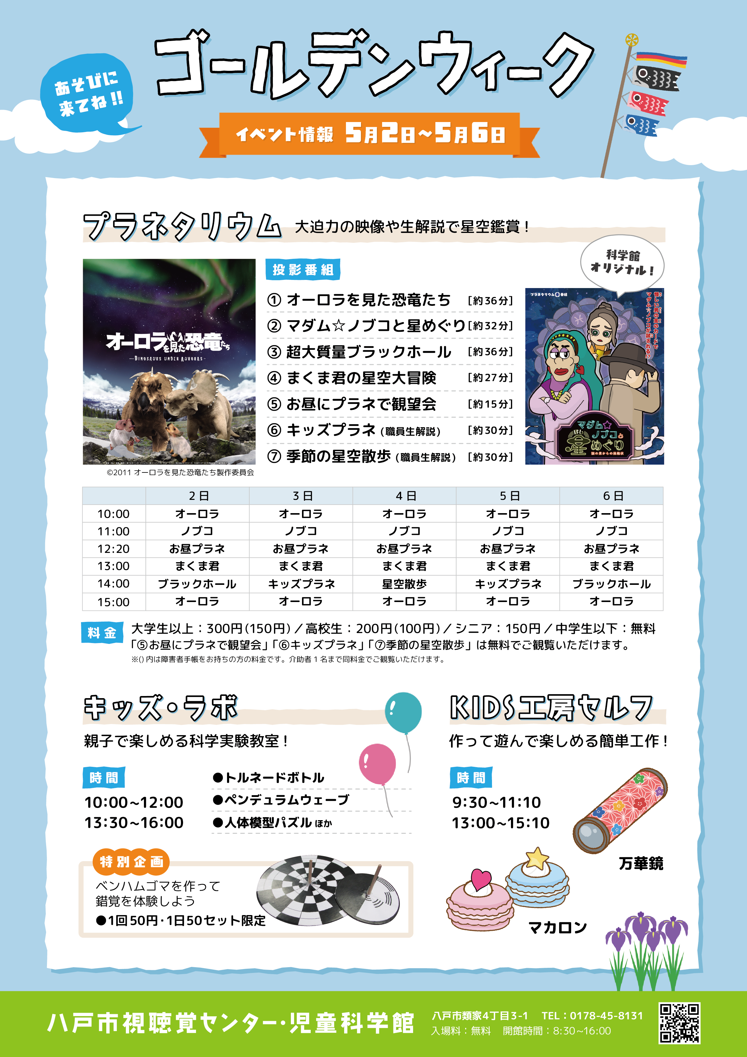 | 14:00 | ブラックホール | キッズプラネ | 星空散歩 | キッズプラネ | ブラックホール |